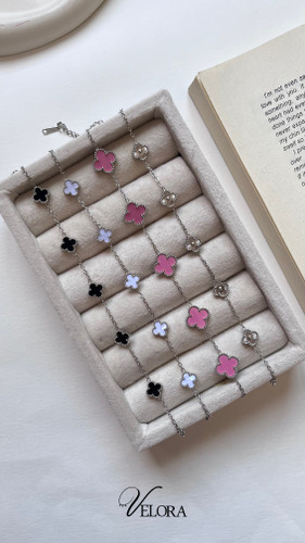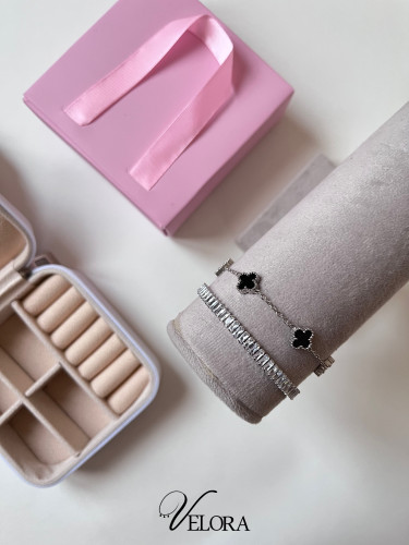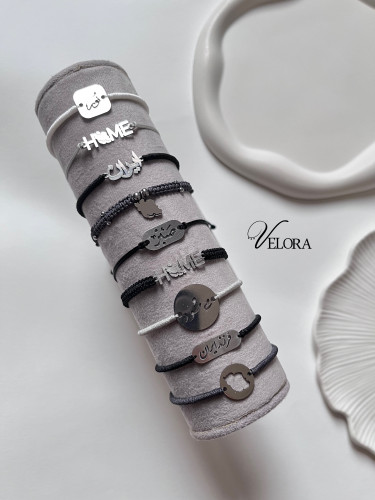 ست دستبند مشکی صورتی با پلاک حروف (جداگونه)