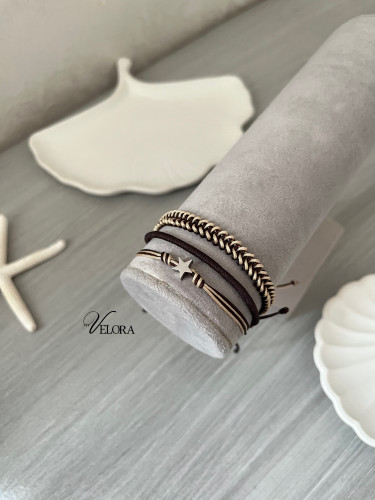 ست دستبند کرم قهوهای با پلاک ستاره ⭐️ (جداگونه)
