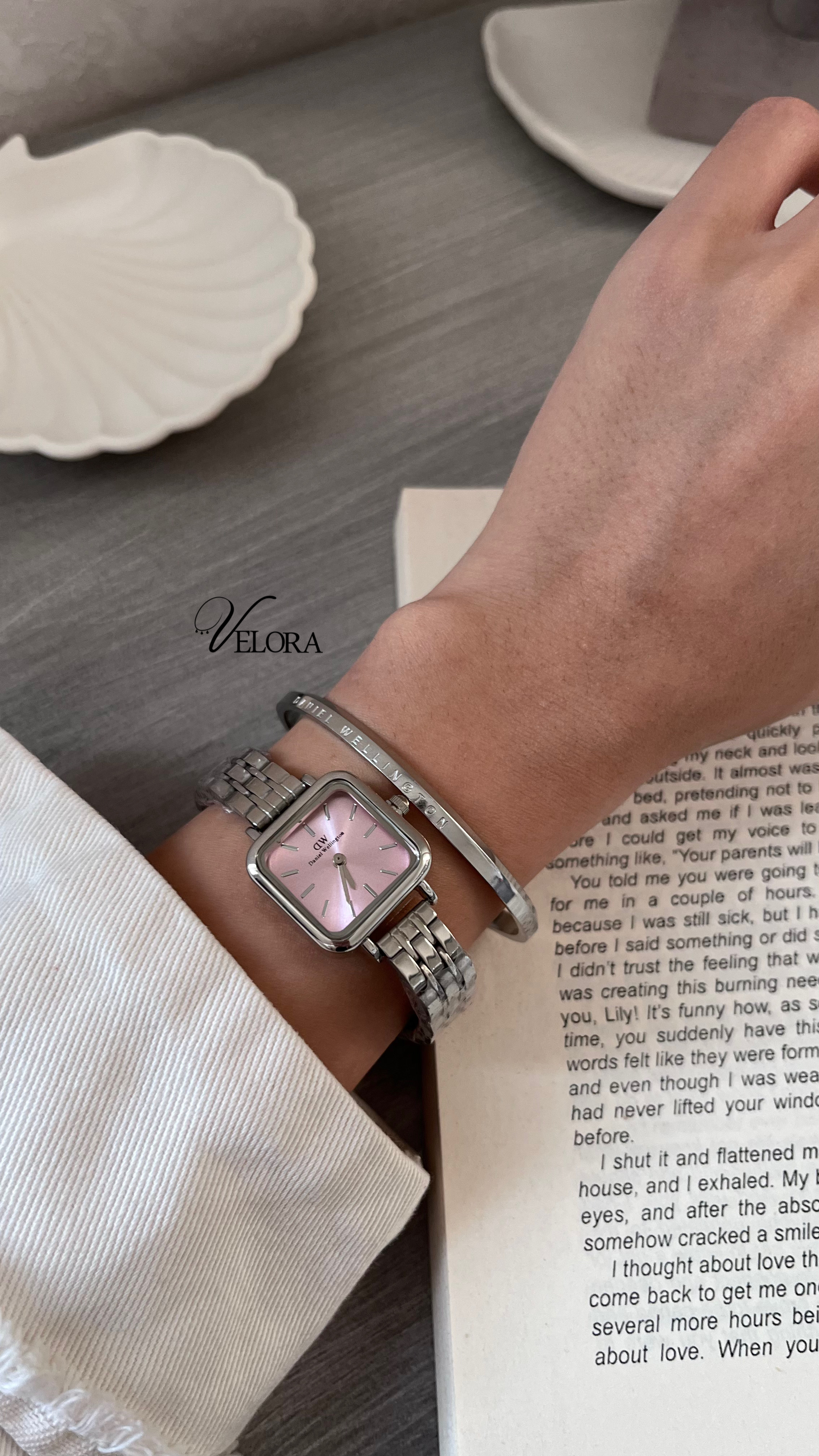 ساعت دنیل ولینگتون صفحه مربعی صفحه صورتی