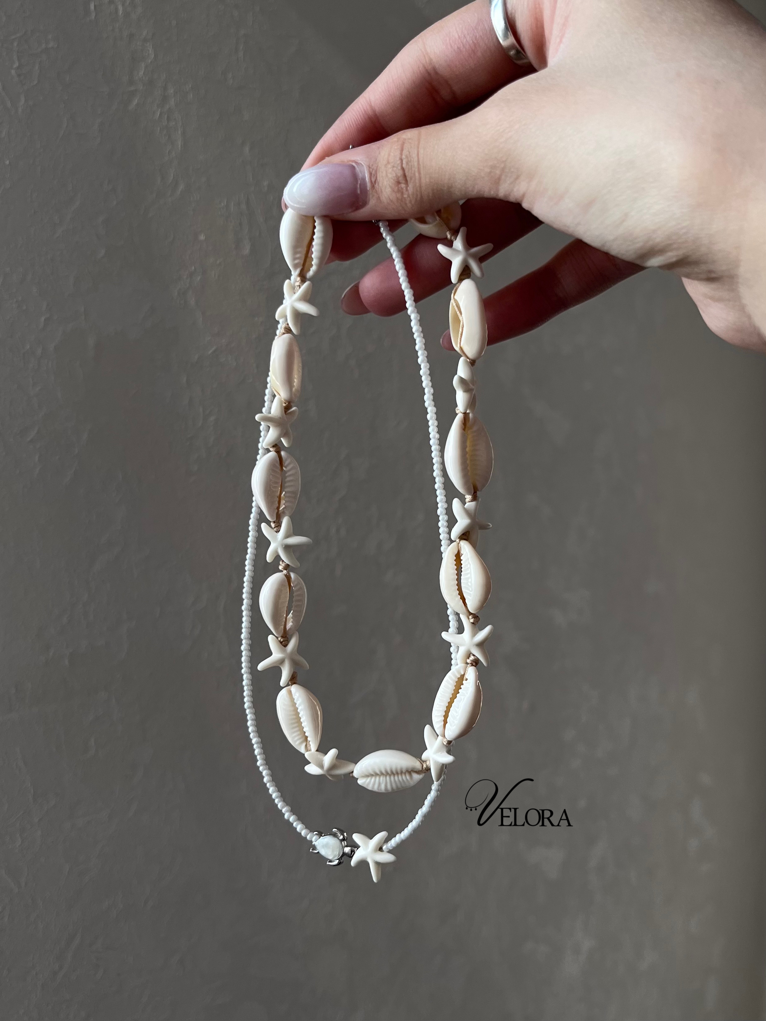 گردنبند صدف طبیعی دو سایز ریز و درشت داره رنگ بند به صورت پیشفرض کرمیه، اگر میخواید رنگ بندش تغییر کنه موقع ثبت در قسمت توضیحات رنگ بندی که میخواید رو بنویسید