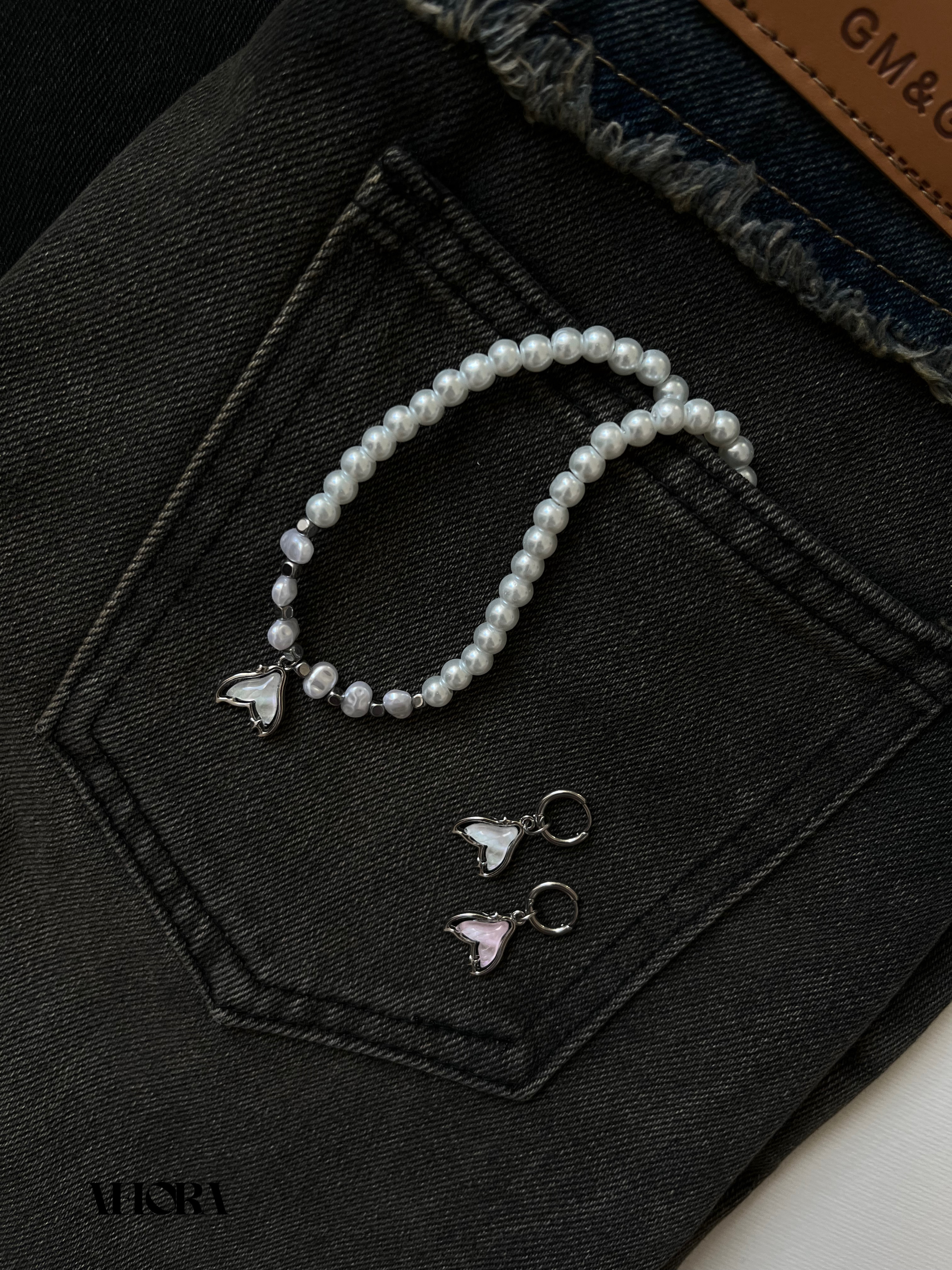 گردنبند دم وال 🐳 • مراقبتی • متریال: مروارید سنگی، مروارید دفرمه، سنگ • اتصالات استیل 🤍 گوشواره ست قابل سفارش گوشواره حلقهای استیل ضد حساسیت