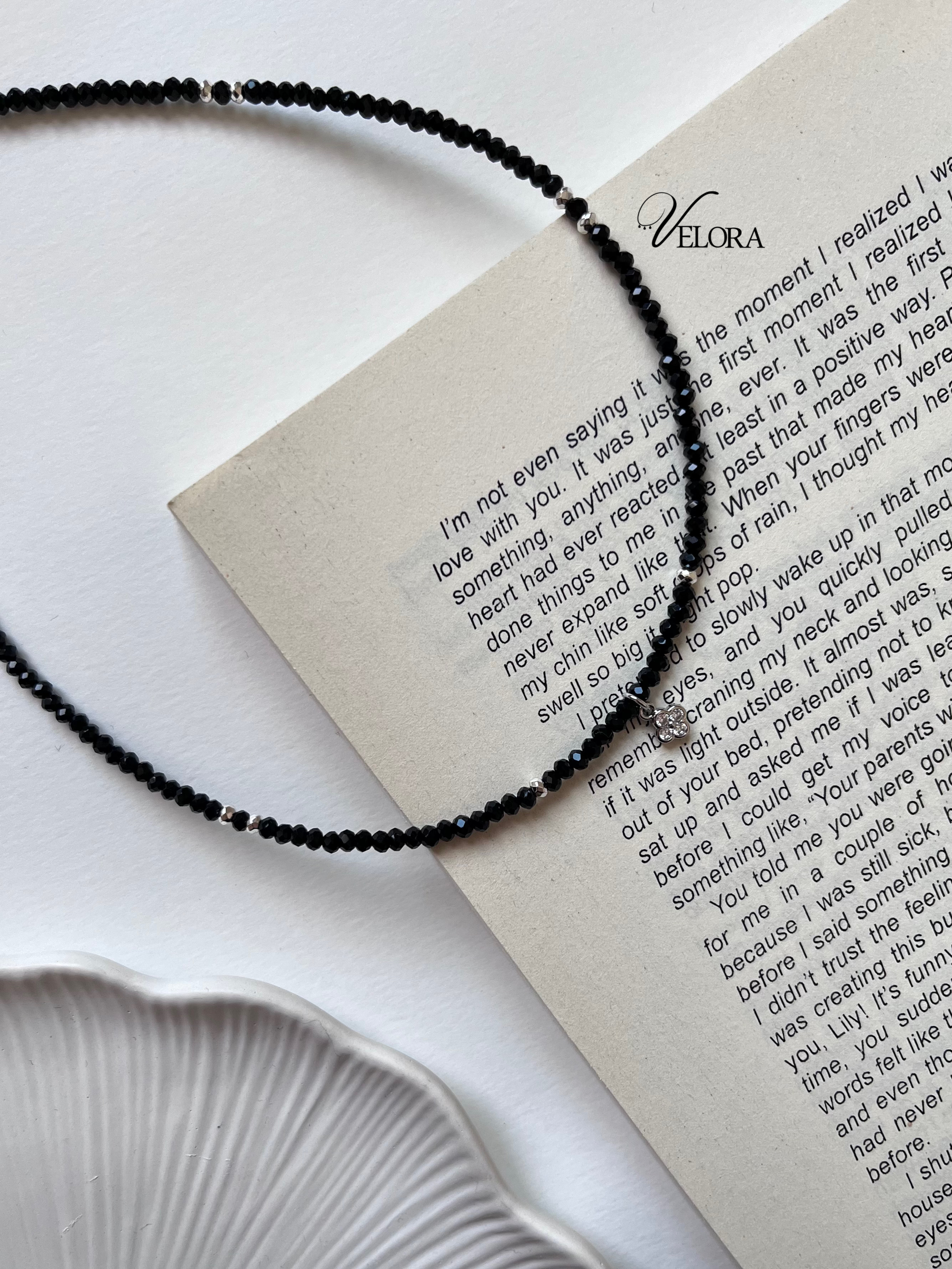 گردنبند کریستال با سنگ حدید و پلاک مینی ونکلیف