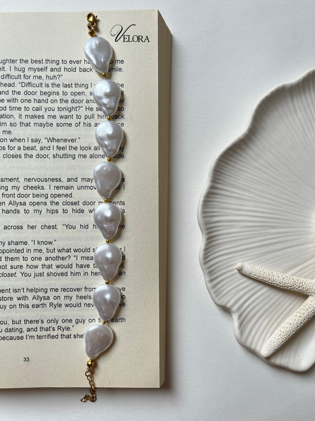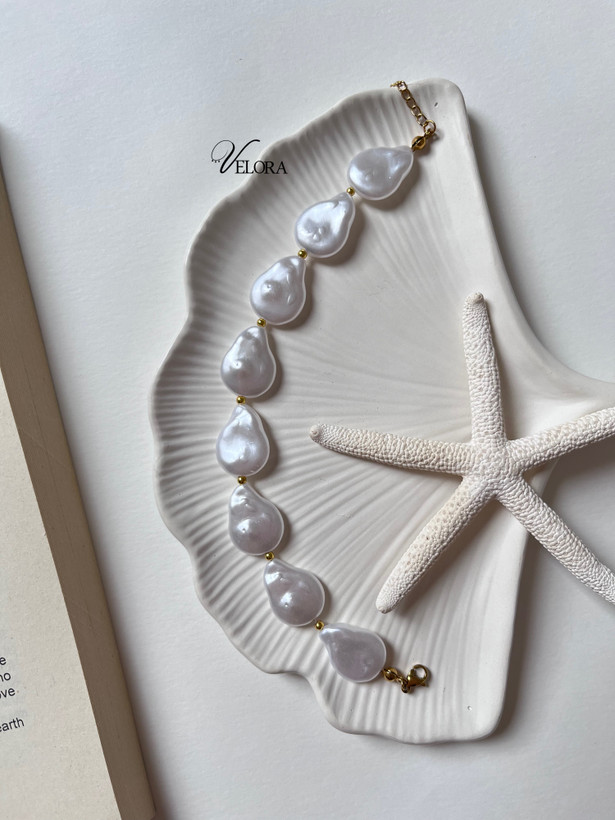 دستبند مروارید دفرمه به همراه سنگ حدید طلایی ❤️
