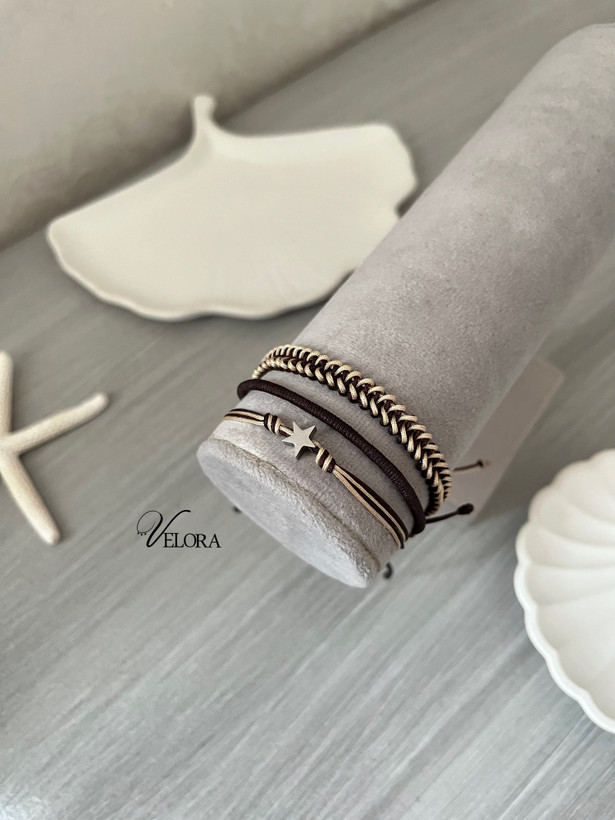 ست دستبند کرم قهوهای با پلاک ستاره ⭐️