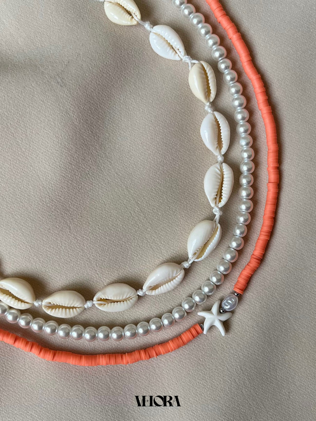 متریال: صدف، مروارید سنگی، فیمو، ستاره دریایی و مروارید دفرمه