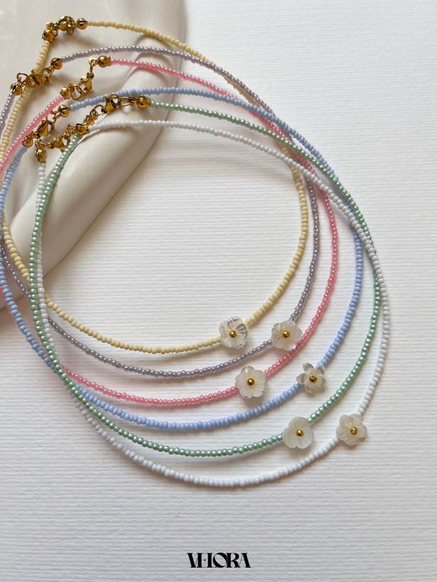 فقط گل طرح صورتی و آبی موجوده ! ولی رنگ گردنبند رو (به جز صورتی) میتونین تغییر بدین 🩷